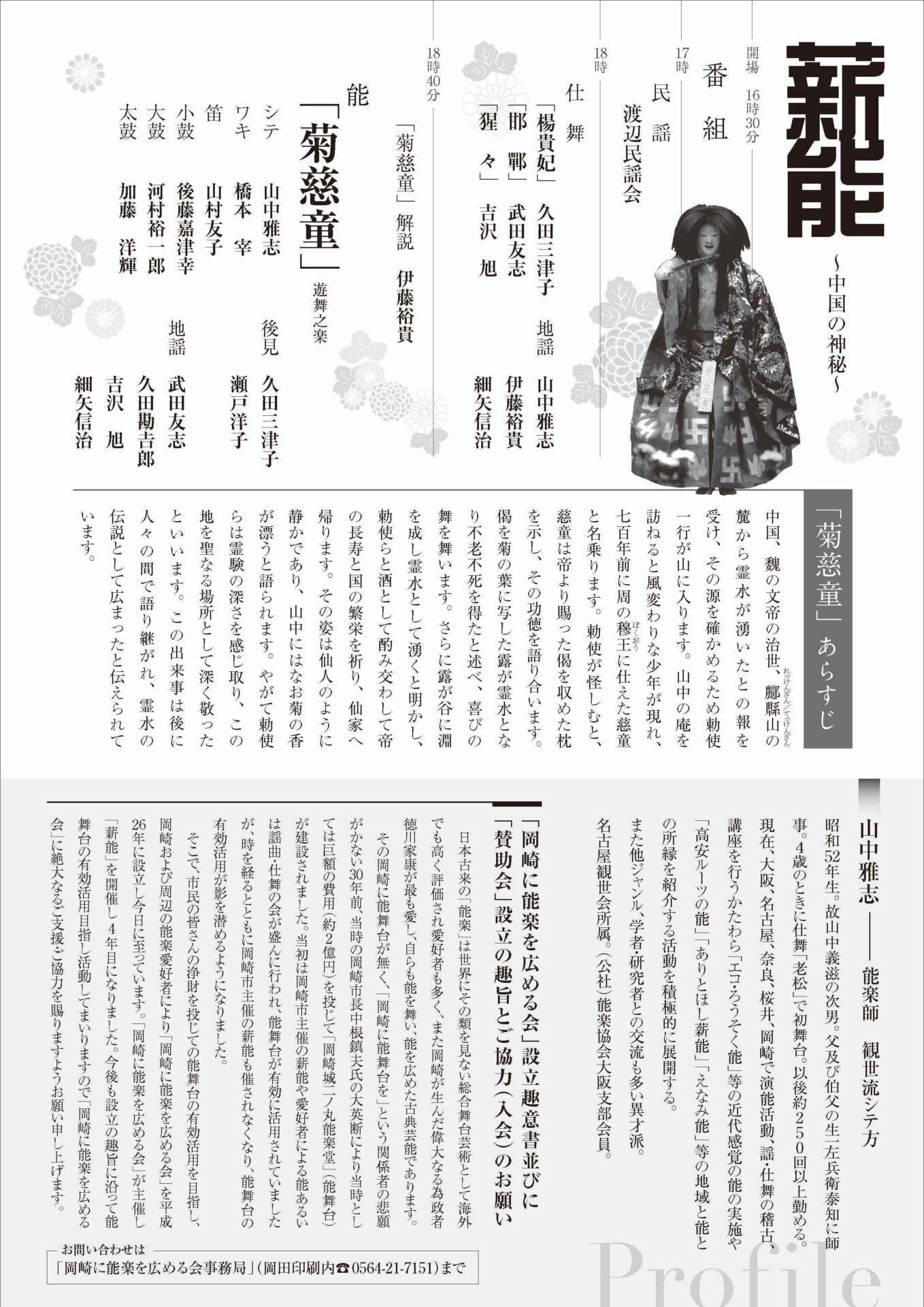 【会員団体からのお知らせ】薪能菊慈童~中国の神秘~<岡崎に能楽を広める会・渡辺民謡会>