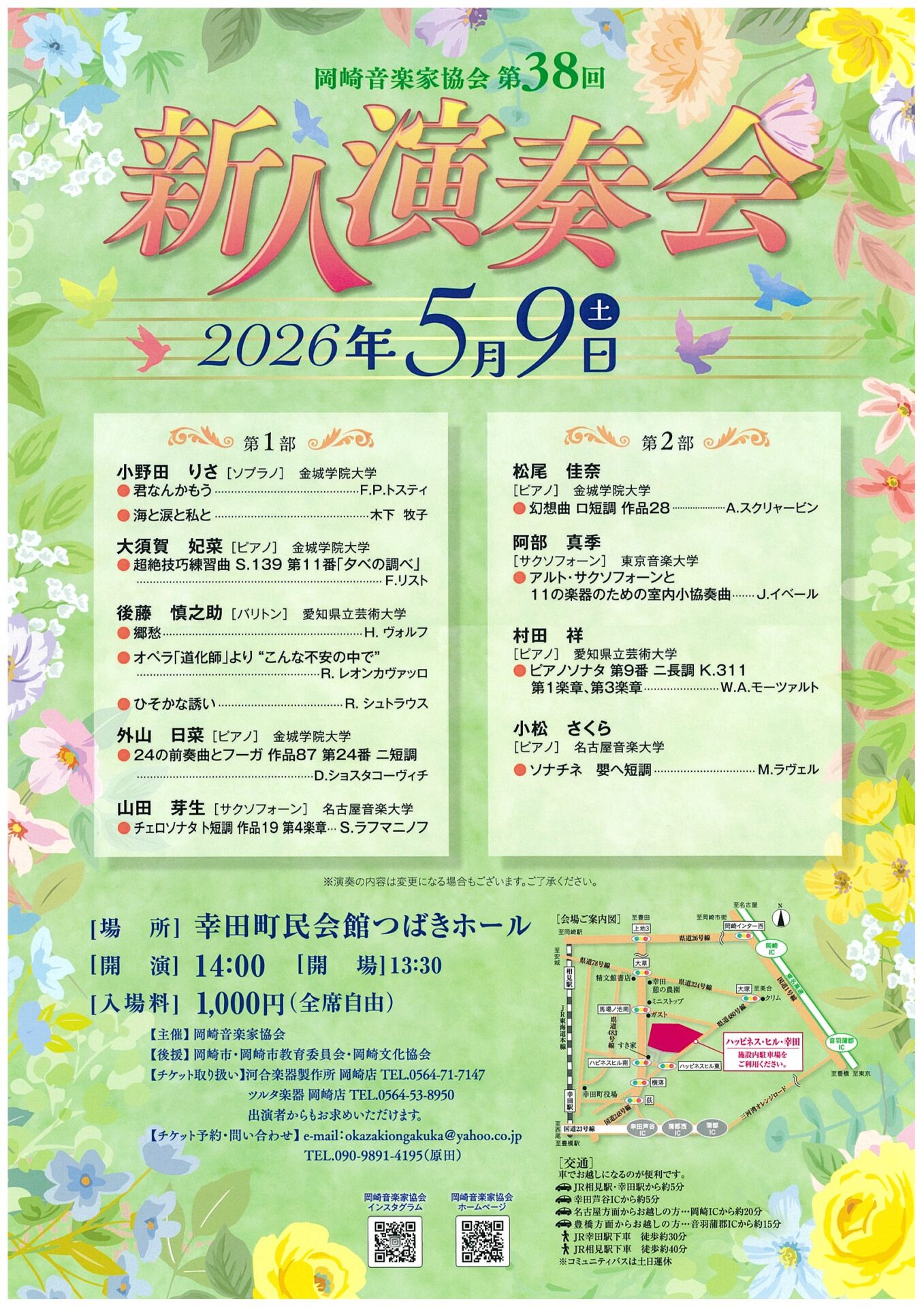 お問い合わせ e-mail:okazakiongakuka@yahoo.co.jp TEL:090-9891-4195(原田)